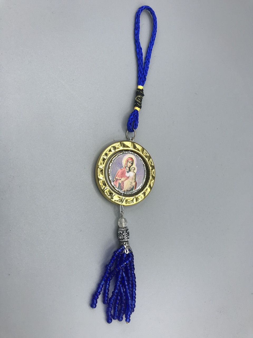 Представлена вашій увазі ікона-підвіска має невеликий розмір, вона легка, оснащена великою петлею, що дозволяє її акуратно і швидко повісити на дзеркало. Ікона - двостороння: з одного боку - образ Богородиці, з іншого - лик Святого Миколая, який здавна вважається покровителем мандрівників та подорожніх. Підвіска виконана в красивому і стильному дизайні, прикрашена бісером. Цей вишуканий виріб стане відмінним подарунком будь-якому водієві, гармонійно вписавшись в інтер'єр салону.
